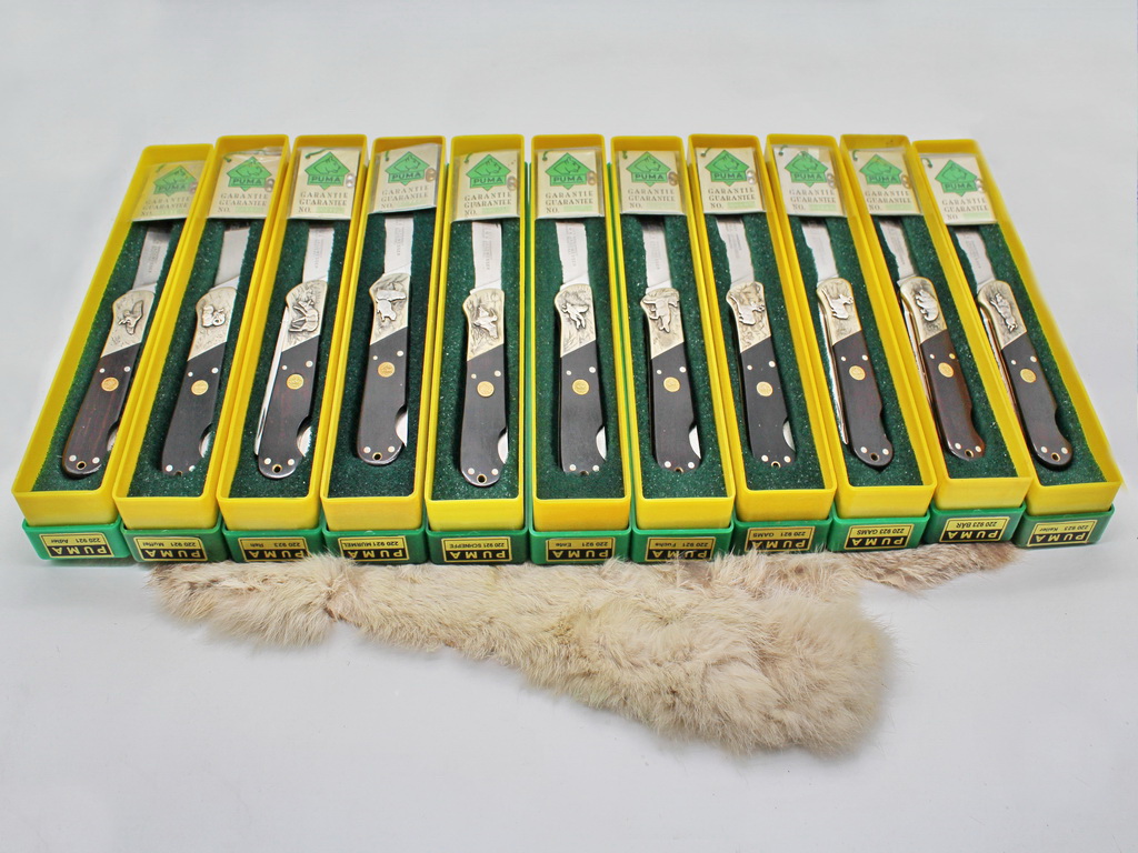 Sonderausführung des Custom "Wildlife" mit Griffbeschalung aus Elfenbeinmicarta und einer Tiereinlage aus Sterling-Silber. Dieses Messer war nie im Handel, es ist ein Unikat und wurde auf meinen Wunsch hin durch PUMA und Frau Hensel gefertigt.